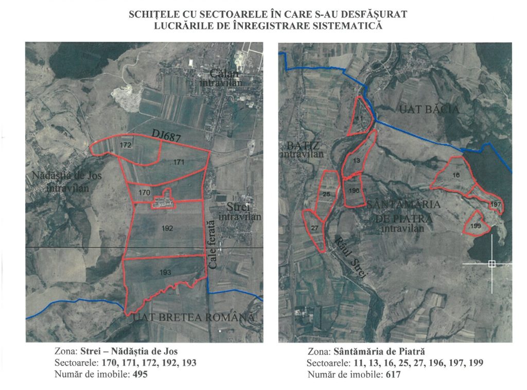 Pentru o mai uşoară identificare a parcelelor, persoanele fizice şi juridice care deţin parcele în sectoarele menţionate mai sus sunt rugate să se prezinte cu următoarele documente: titluri de proprietate, acte stare civilă, contracte de vânzare cupărare/donaţietintreţinere, certificate de deces, certificate de moştenitor, extrase de carte funciară vechi sau alte acte care să ateste proprietatea sau posesia — după caz.