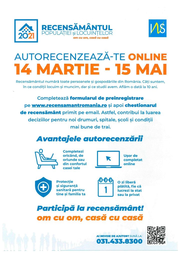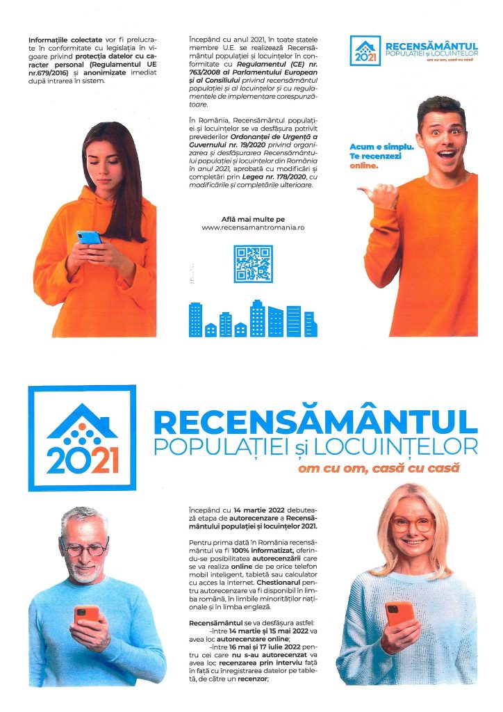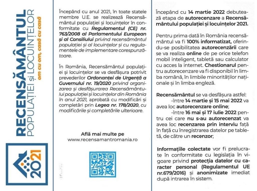 14 MARTIE 2022 – ÎNCEPE AUTORECENZAREA POPULAȚIEI și a LOCUINȚELOR