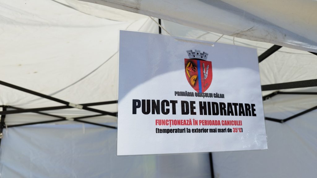 Având în vedere prognoza meteorologică și atenționarea de cod galben ce indică creșterea temperaturilor în intervalul 29 iunie – 1 iulie 2022, în zona UAT CĂLAN corelată cu creșterea nivelului umidității ca urmare a precipitațiilor din ultima perioadă, Primăria Orașului CĂLAN a montat un punct de hidratare pentru cetățeni, la intersecția străzii Independenței cu Strada Piața Libertății. Punctul de hidratare funcționează în perioadele caniculare când temperatura exterioară depășește 35°C.