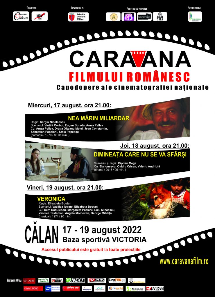 Primăria orașului Călan și Consiliul Local în colaborare cu CINECULTURA readuc CARAVANA FILMULUI ROMÂNESC la Călan în 2022, pe stadionul VICTORIA în perioada 17-19 august, cu următoarele proiecții: